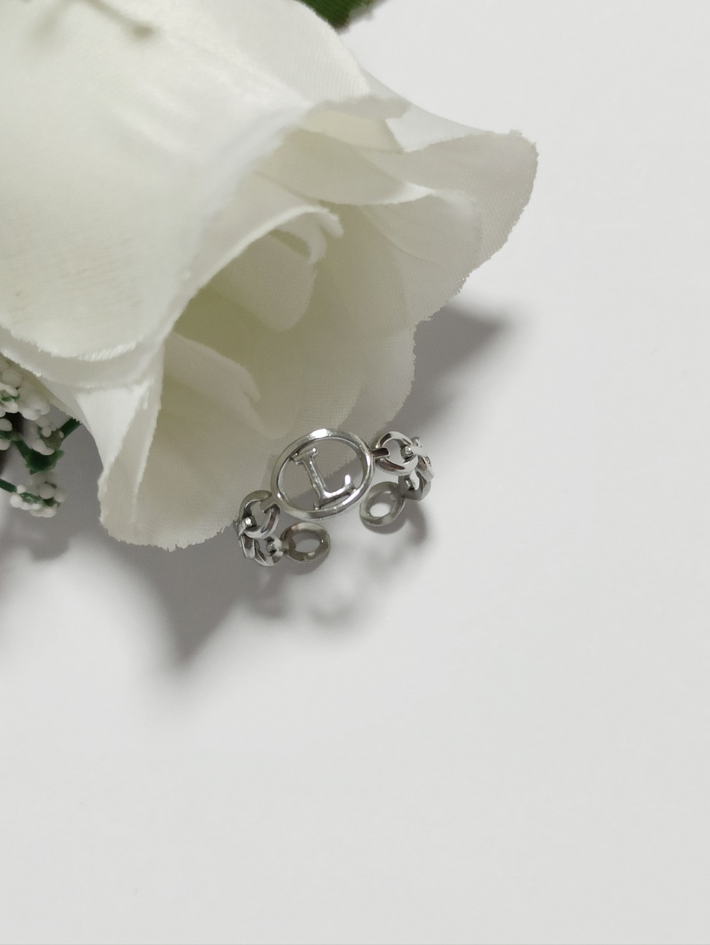 La letra «L» que adorna este anillo no solo es un símbolo personal, sino que también añade un elemento distintivo a la pieza. Fabricado con materiales de alta calidad, este anillo está diseñado para resistir el desgaste del uso cotidiano, manteniendo su brillo y atractivo a lo largo del tiempo. Su diseño minimalista lo hace adecuado para cualquier ocasión, permitiendo que quien lo lleve se sienta elegante y a la moda sin esfuerzo.