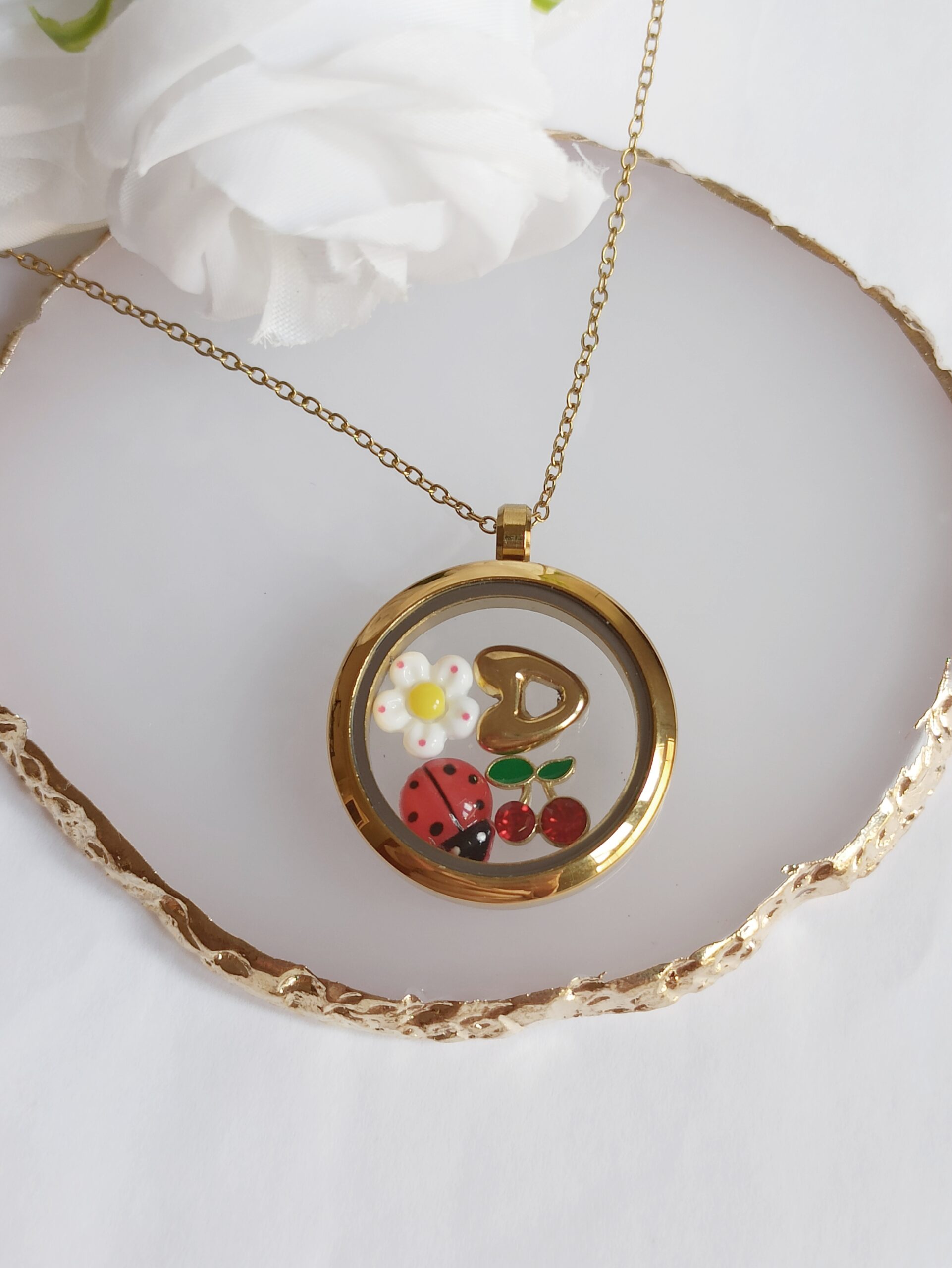 - Color: Dorado con Resina y circonitas