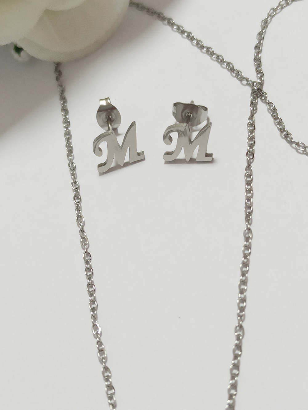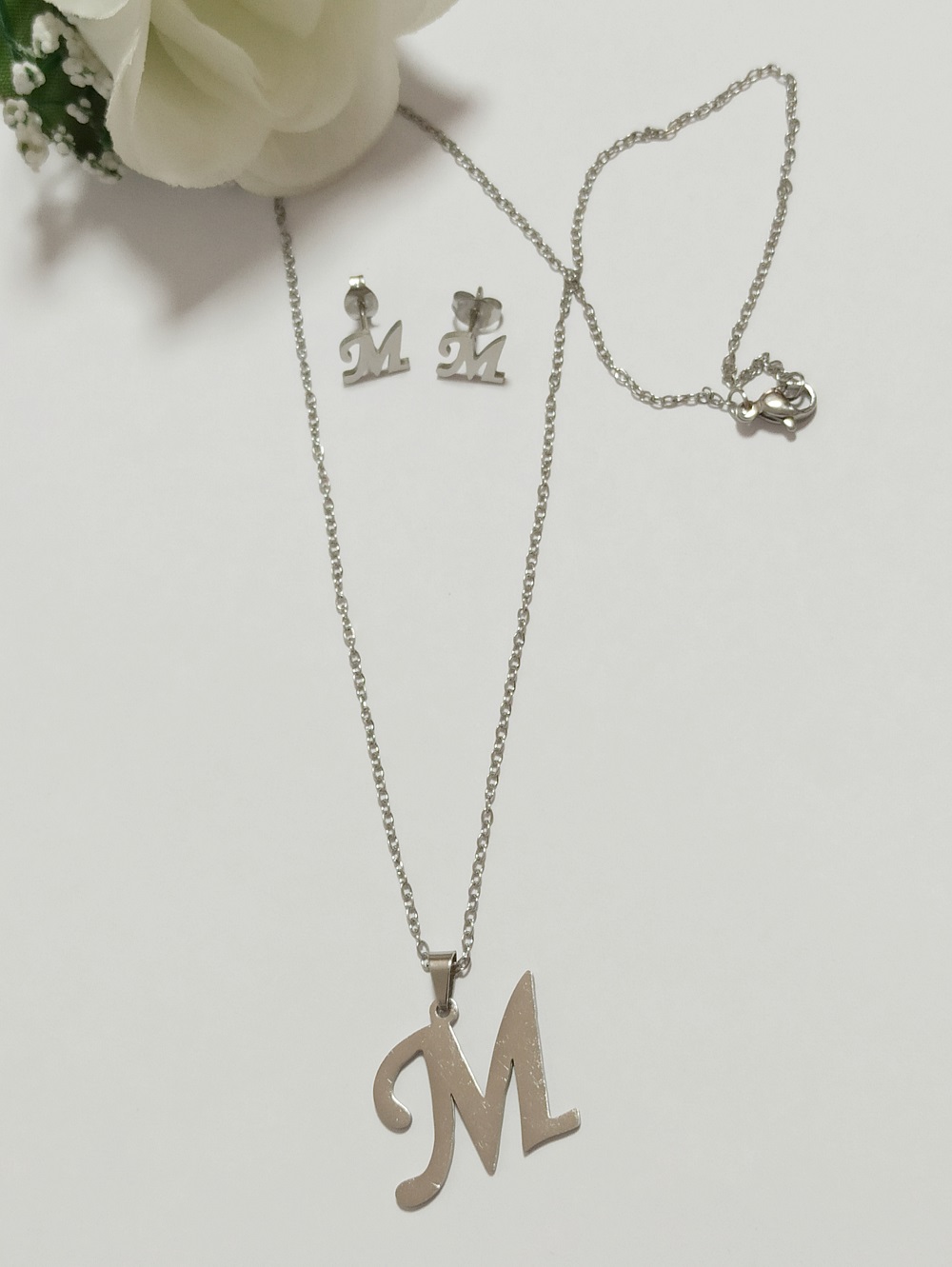 El conjunto inicial que se presenta está diseñado con la letra «m» y se encuentra en un elegante acabado plateado. Este tipo de diseño no solo resalta la inicial de manera distintiva, sino que también aporta un toque de sofisticación y modernidad al accesorio. La elección del color plateado permite que el conjunto sea versátil, pudiendo combinarse con diversas prendas y estilos, lo que lo convierte en una opción ideal para cualquier ocasión.
