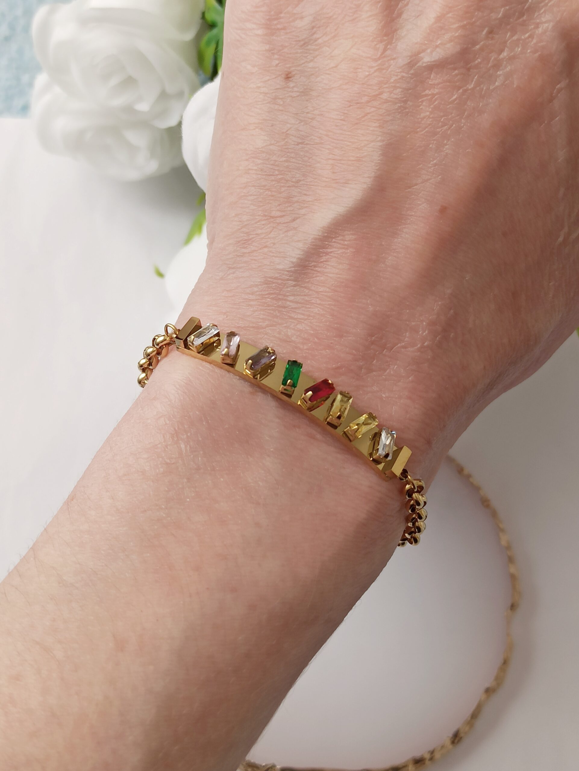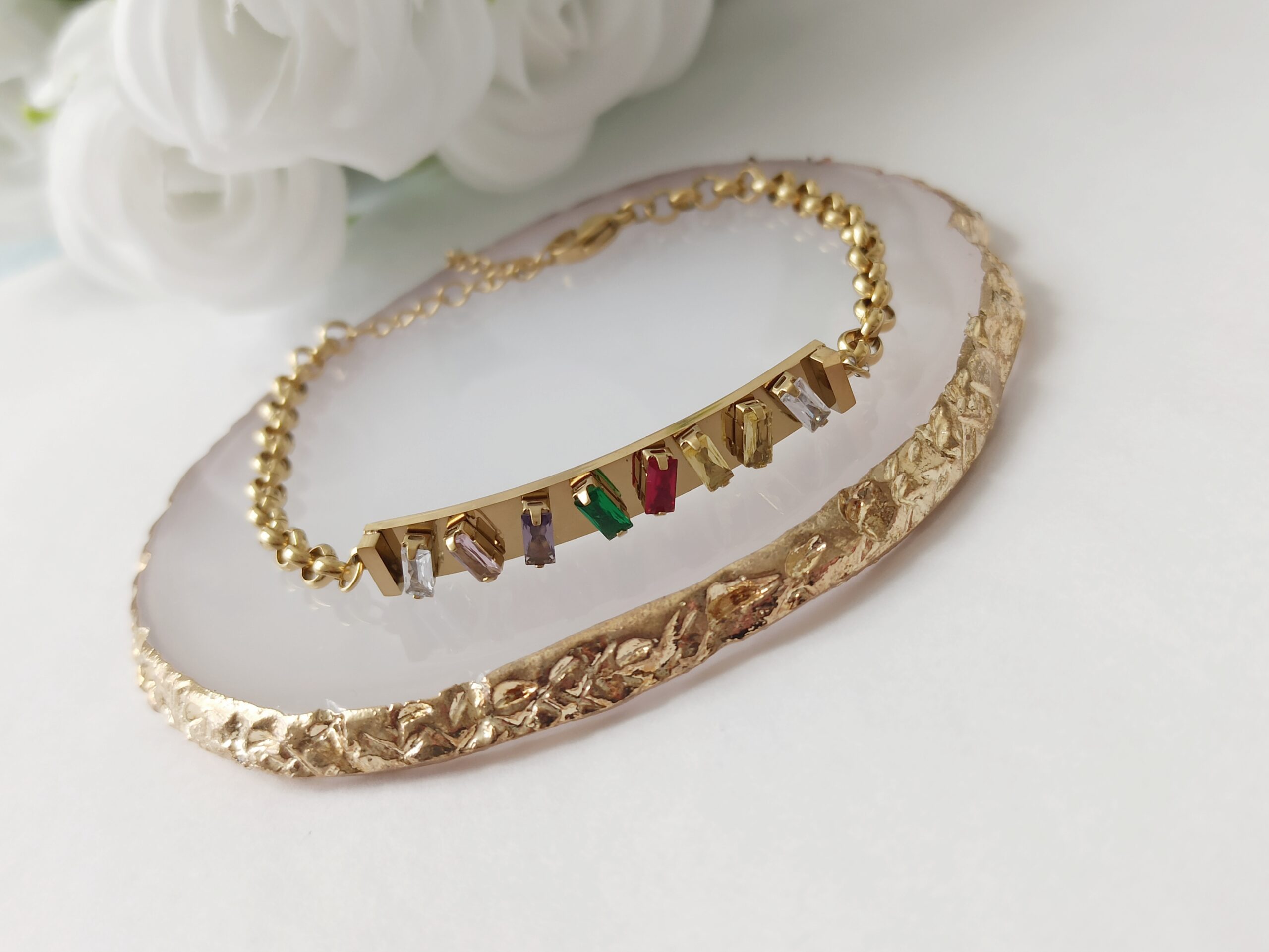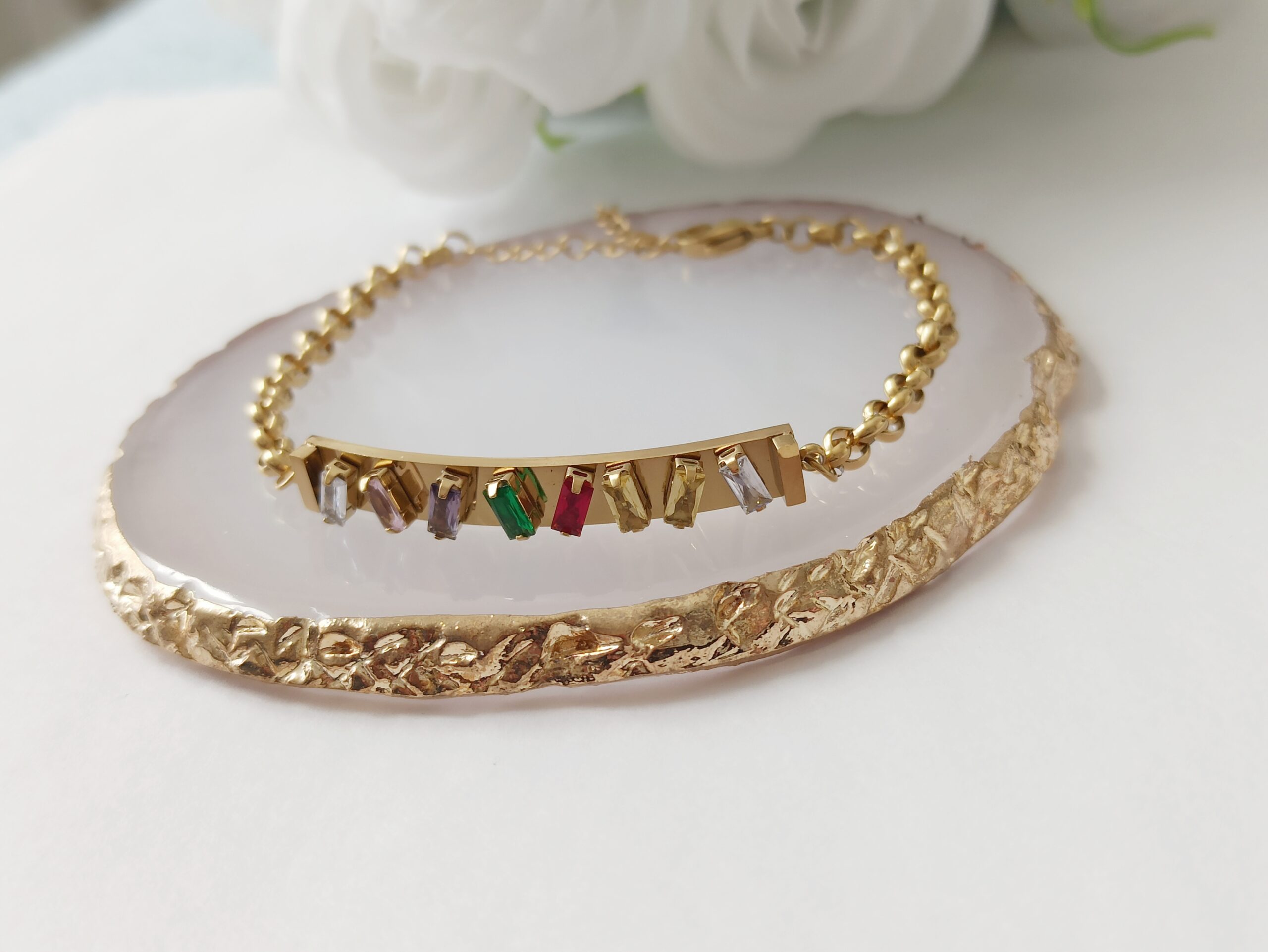 - Color: Dorada con Circonitas de color